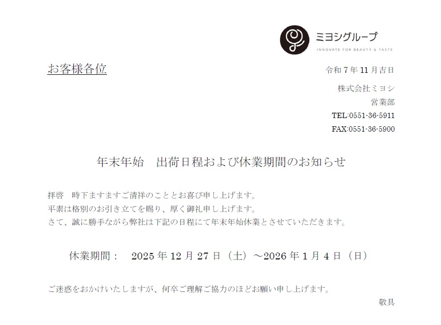 年末年始 休業期間のお知らせ